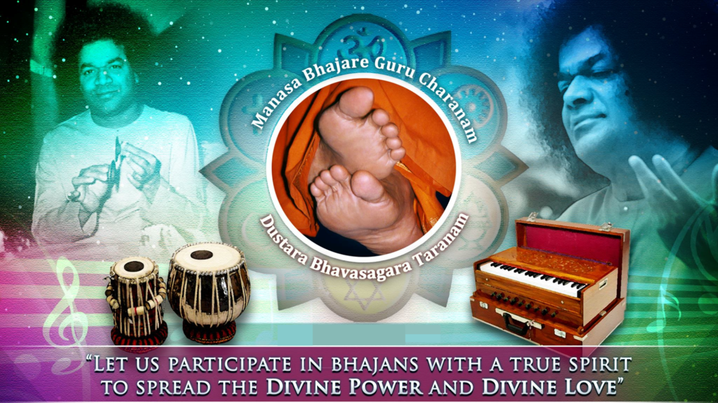 ‘BHAJAN’ or ‘NAAMSAMARNA’ means group devotional singing of the glory of god. When and wherever his glory is sung, he is always there. Unless you sing bhajans for your own ecstacy, you cannot bring joy to others, thus preventing them from sharing ‘ANANDA’ i.e. bliss. With each bhajan sung the mind must be rendered purer, free from passion and stronger in faith.